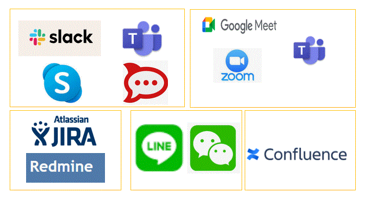プロジェクトマネジメント 日本IT現場でよく使うコミュニケーションツール communication, テレワーク,テキストチャンネル,音声チャンネル,動画チャンネル 2021.06.03 プロジェクトマネジメント技術系