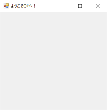 このコードを実行すると、「ようこそC#へ!」というタイトルをもったウィンドウ画面が表示されます。