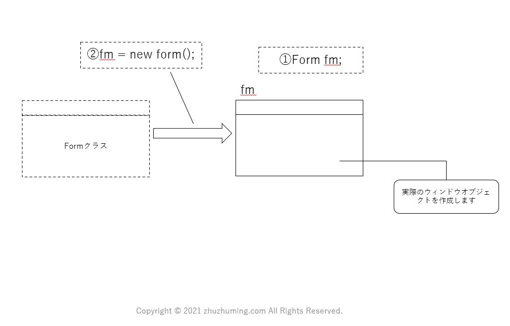 Form fm; //ウィンドウ(フォーム)につける名前を用意します