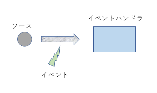 まず、イベントはソースで定義され、発生させられます。デリケートによって、このイベントを処理するべきイベントハンドラの引数のリストが宣言されてます。