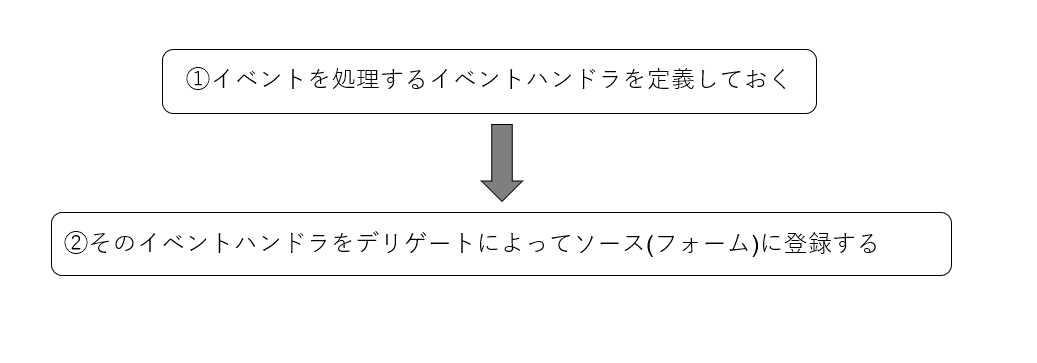 デリゲートによって、ソースにイベントハンドラを登録する。
