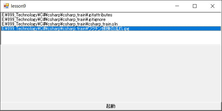 プログラムを実行すると、リストボックスにファイル名が表示されます。
