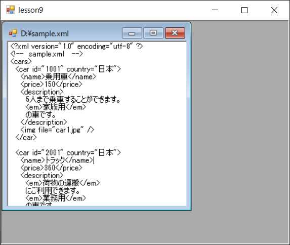 ここではディレクト内のXMLファイルを表示するに、親フォームの中に子フォームを表示してます。このようなウィンドの事をMDI(multiple document interface)とも呼びます。