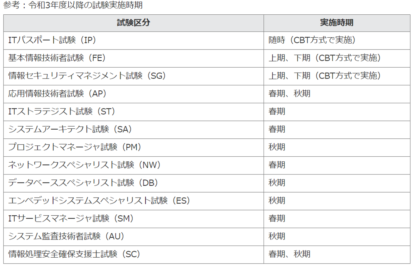 試験の実施時期は下記となっています。CBT方式はComputer based testingの略です。