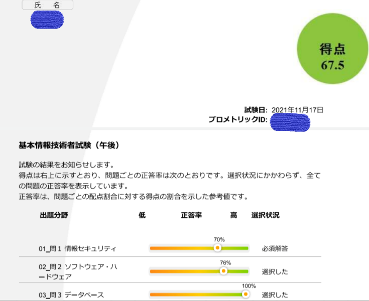 2021年の基本情報技術者試験を合格しました。おめでとうございます!