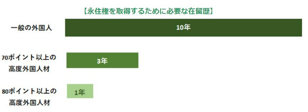 私の場合は日本のビザ制度に高度人材というビザがあり、1年間もしくは3年間で永住権を申請可能とのことです。ポイント80点以上なら、1年間永住申請可能になり、70ポイント以上80ポイント未満の場合は3年間で永住申請可能です。