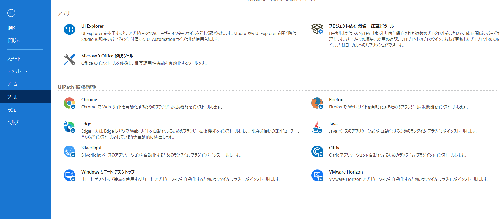 | 開発 | UiPath Studio | 自動化ワークフローを構築する開発ツール |