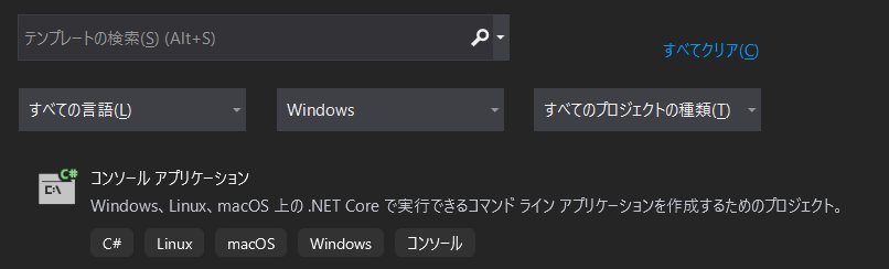 C#コンソールアプリのプロジェクトを作成する