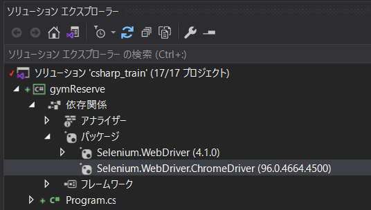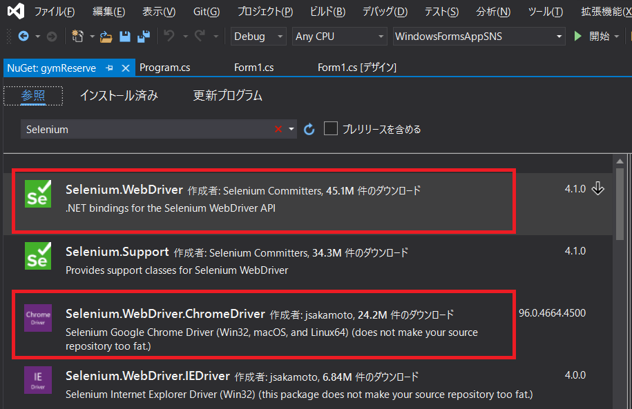 Seleniumを使えるようにNuGetより2つのパッケージをダウンロードします。
