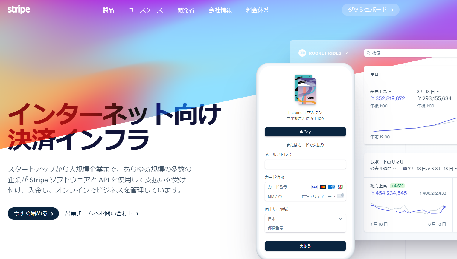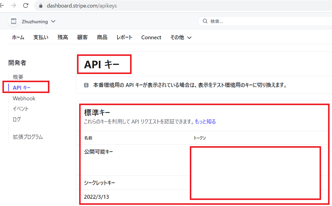 - Stripeのダッシュボード https://dashboard.stripe.com/dashboard