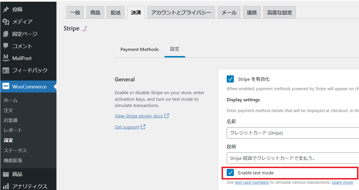 - Stripe用:プラグイン「WooCommerce Stripe Payment Gateway」