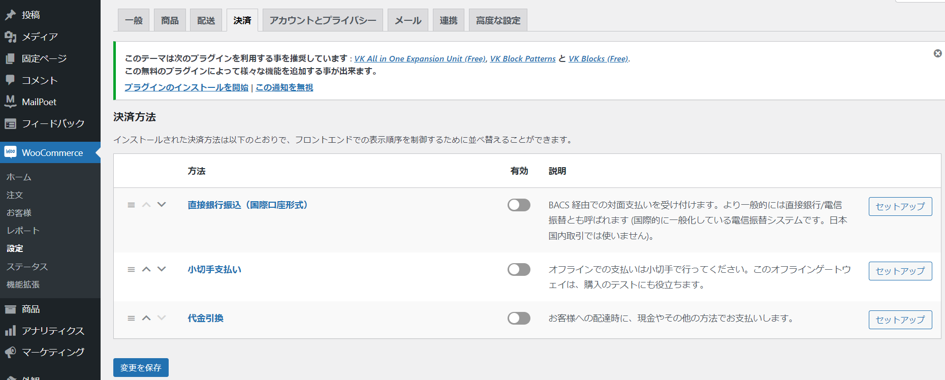 - Plugnin: WooCommerce For Japan 日本国内振込できる