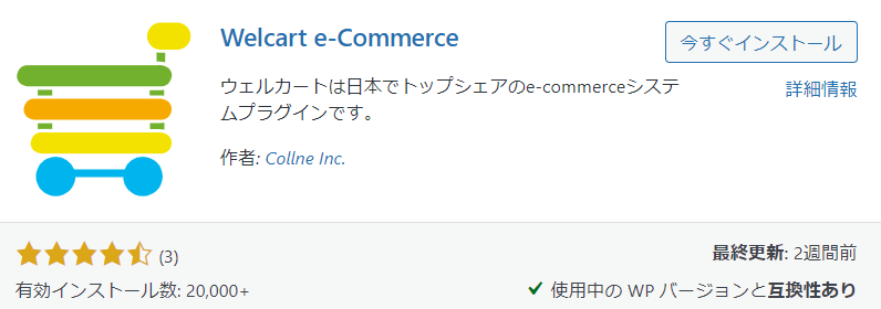 プラグイン>新規追加 でキーワードに【WooCommerce】と入力しインストール後、有効化してください。