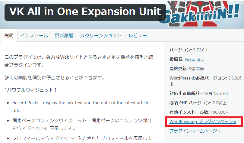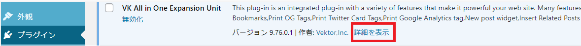 管理画面からプラグインボタンを押し、プラグインの詳細を表示させる